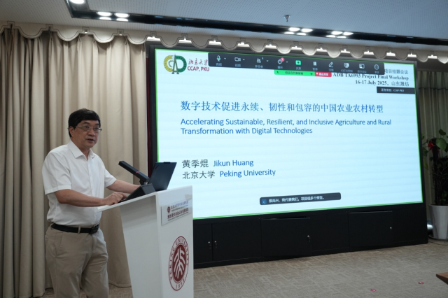 2025年7月17日,北京大学现代农学院在山东潍坊北京大学现代农业研究院顺利举办了“数字技术促进可持续、韧性和包容的中国农业农村转型及对亚洲其他发展中国家的借鉴”学术研讨会。该研讨会的主要目标是分享亚洲开发银行技术援助项目的成果与经验。该项目在农业农村部对外经济合作中心、政策与改革司的指导和亚洲开发银行的资助下,由北京大学现代农学院院长黄季焜教授领衔的专家团队历时两年对我国数字技术在农业农村中的应用案例进行了系统总结。会议由亚行技术援助项目农业专家、北京大学现代农学院易红梅教授主持,来自农业农村部、亚洲开发银行、地方政府、农业数字服务企业、以及深耕数字农业各领域的专家一共30余位代表参加了此次会议。